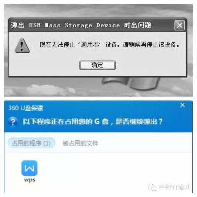 图解:上图是Window XP 下U盘弹出错误的窗口提示;下图是某虎软件的弹出提示,不仅给出了提示,还提供了解决方案(体验这方面,某无节操虎还是做的挺好的)。