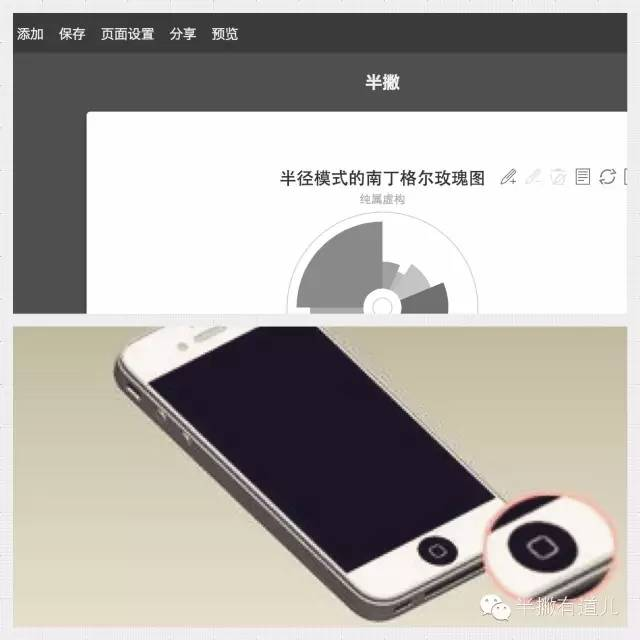 图解:上图为百度图说的操作页面,在设计操作中没有任何撤销的按钮;下图为苹果手机的Home按键,有了它任何时候你都能回到手机的首页。