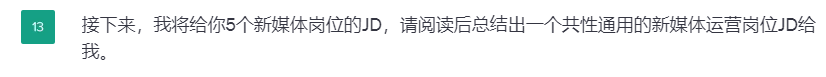 接下来,我们让AI扮演新媒体运营专家,及求职辅导师,来辅助提供简历内容,以及根据你给他的通用岗位JD,生成匹配的简历模板。指令如下