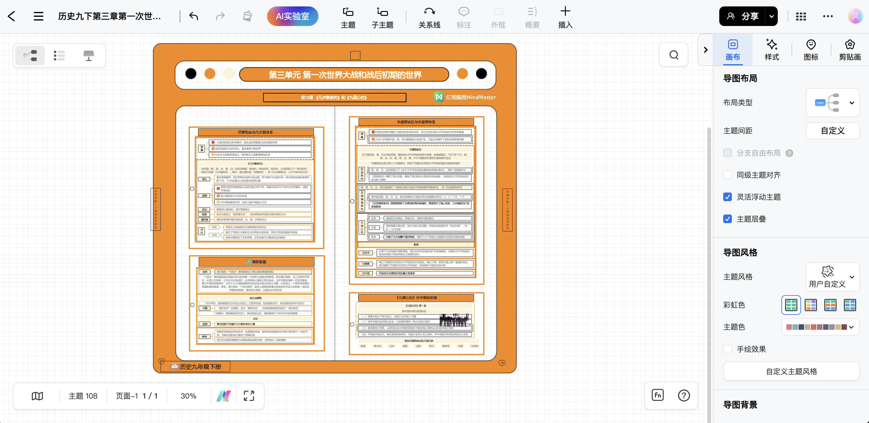 直接就生成了对应的脑图,软件你可以调整配色、字体大小、字体类型、手绘效果等等。