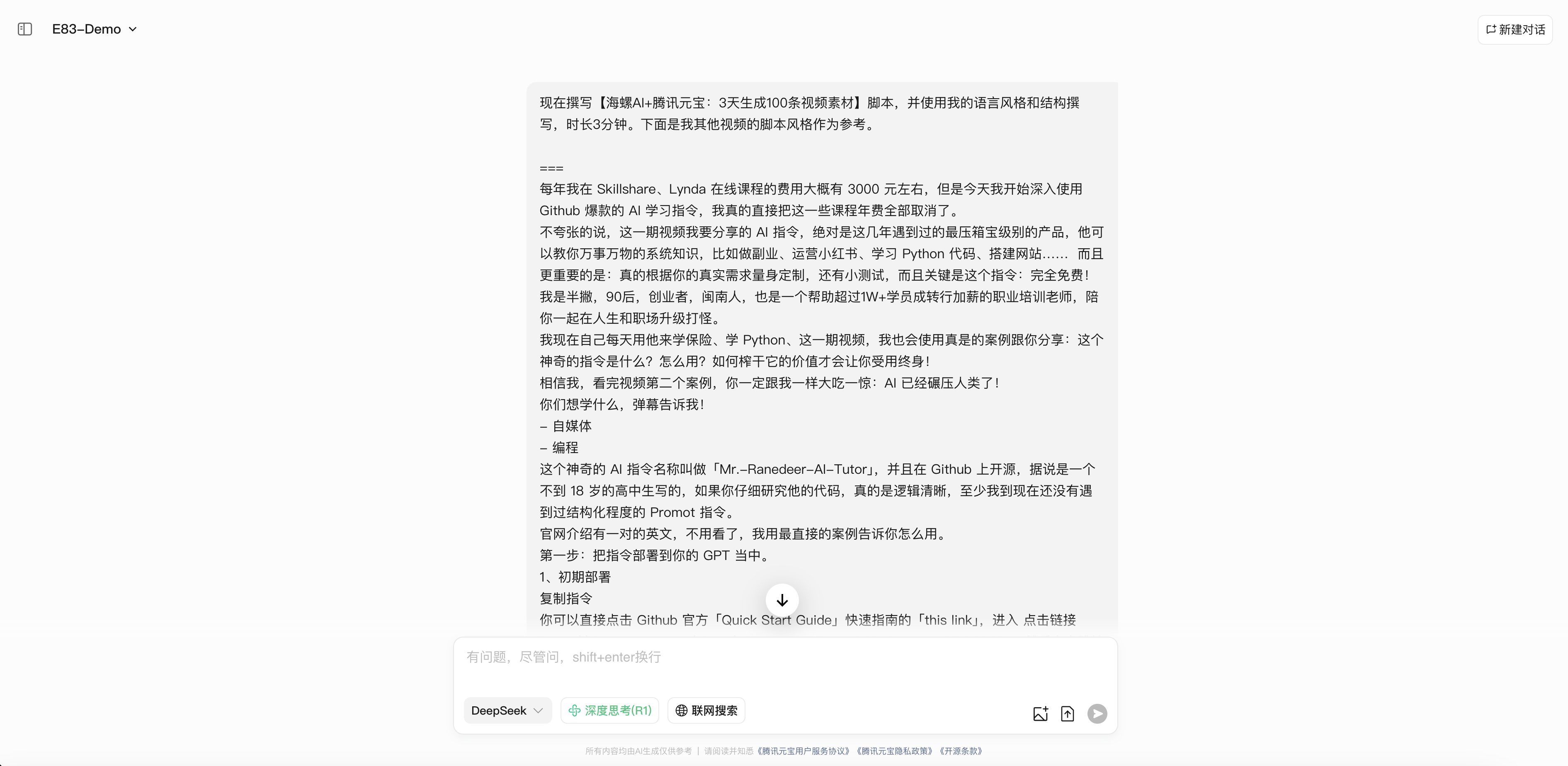 (画面:DeepSeek操作录屏+你的真人出镜小窗)