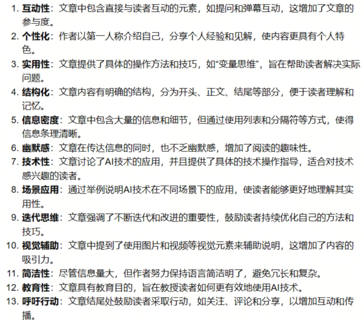 另外,这里「半撇风」语言风格, 是因为我在这个GPTs的提示词中,预先让AI学习了我的历史文章的写作风格,让AI总结,然后把这种风格定义为「半撇风」,比如互动性、个性化、实用性、结构化等等。