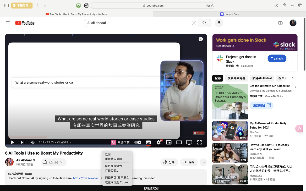 另外,我还会安装沉浸式翻译插件,我在阅读任何英文内容,无论是文章还是视频,都可以变成双语对照的版本。