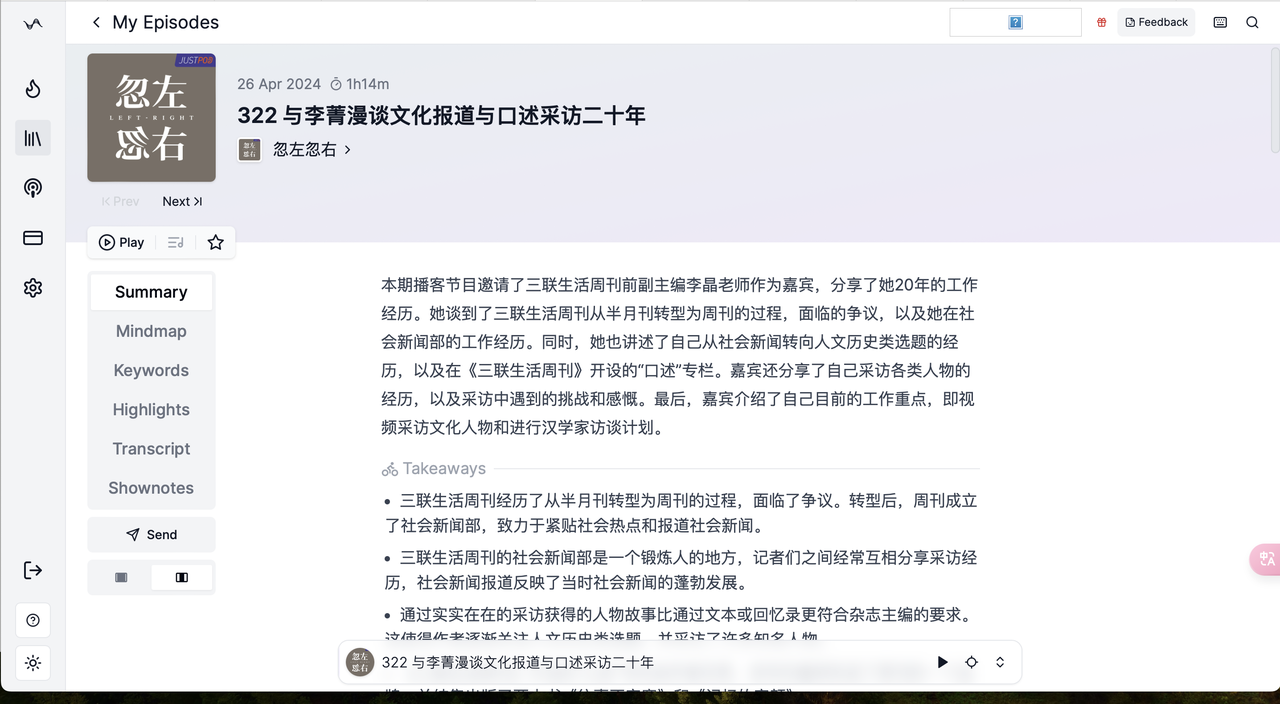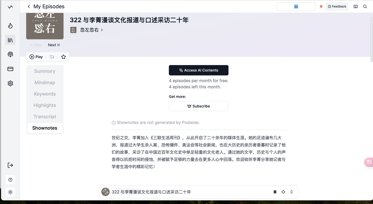 博客的部分,我会把小宇宙的节目导入到Podwise,它会帮我把音频变成文字。