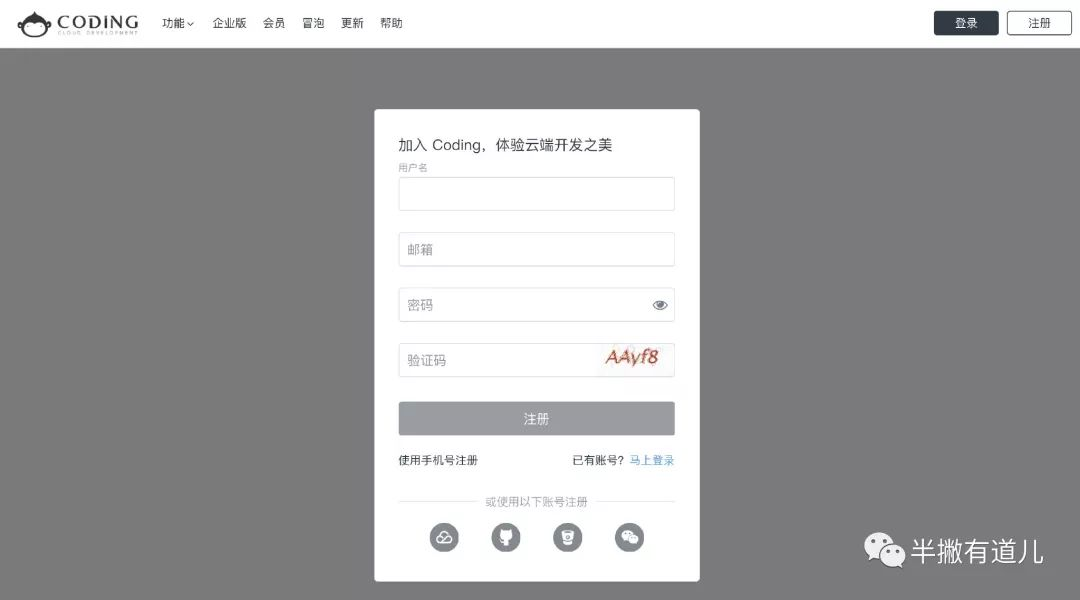 - 注册 Coding.net 的账号;