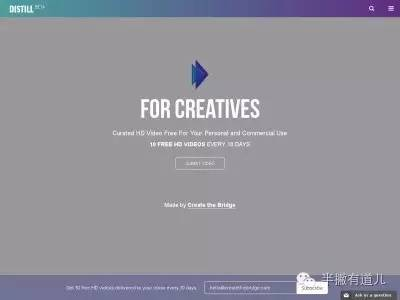 简介:技术服务公司Create The Bridge的子项目,每10天会上架10段视频,全是免费高清的广告素材。链接: http://wedistill.io/