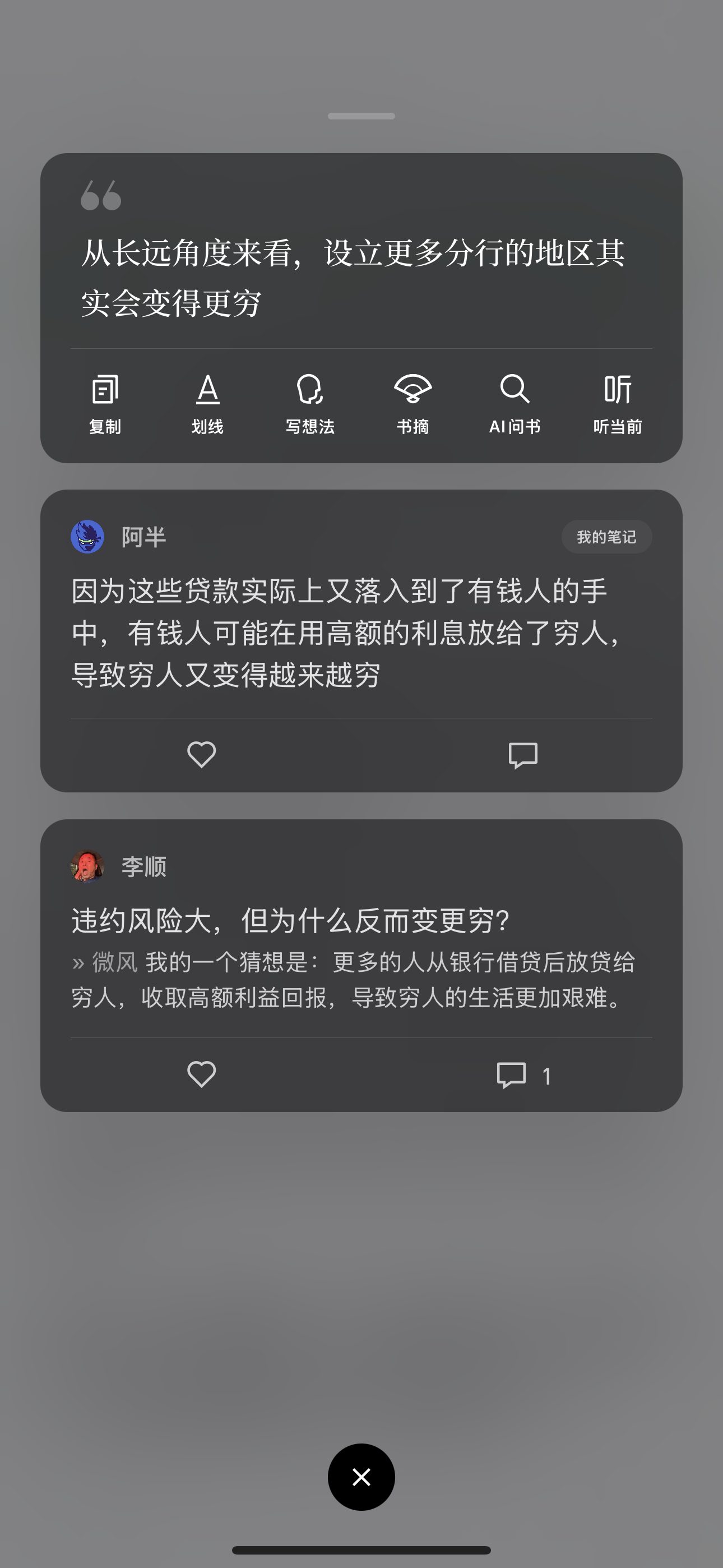 这个我觉得是对我价值最大的过程,比如我在阅读《贫穷的本质》的时候,我看到书中有一个部分提及:印度政府在一些农村地区额外设置能贷款给穷人的银行分行,但是这个本来是好的措施,最后却导致这一些地区变得更穷了?