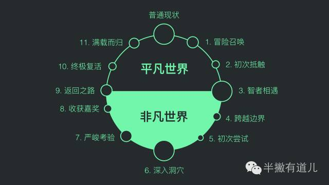 回归到故事结构实际的应用场景:下次无论是PPT演说还是一场分享,当你要都需要经历一段说服别人接受你的观点的过程的时候,尝试也让你的观众,你的英雄去经历一段英雄应该有的旅程吧。