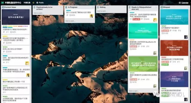 如果你做过的内容管理,你应该知道保持团队内每一个人按时、按质、按量地输出文章,并不是一件容易的事情,但是 Trello 很好地把问题解决了。Trello 是我们所有工作的核心区域,每个任务都可以设置具体的负责人、截止日期、需要产出的事项等等,所以我们可以非常直观地看到 1 个任务从开始到结束整个流程的所有细节。