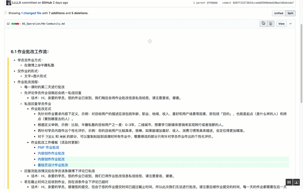 - 细致的版本跟踪:每一次创作者提交的修改,我们都可以知道它改了哪些地方,而且可以通过 Git 快速的回退到历史某一个版本,这些都是传统的文档工具无法比拟的。